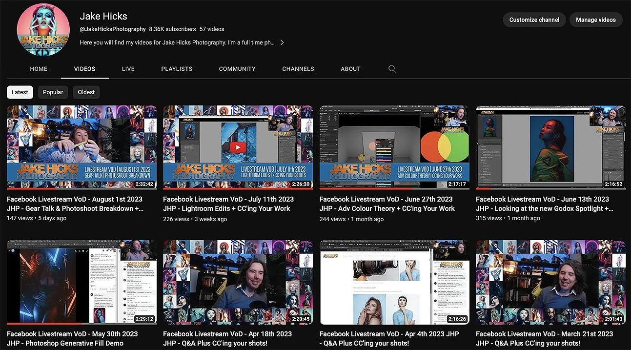 Watch my livestream VODs here: Jake Hicks Photography YouTube