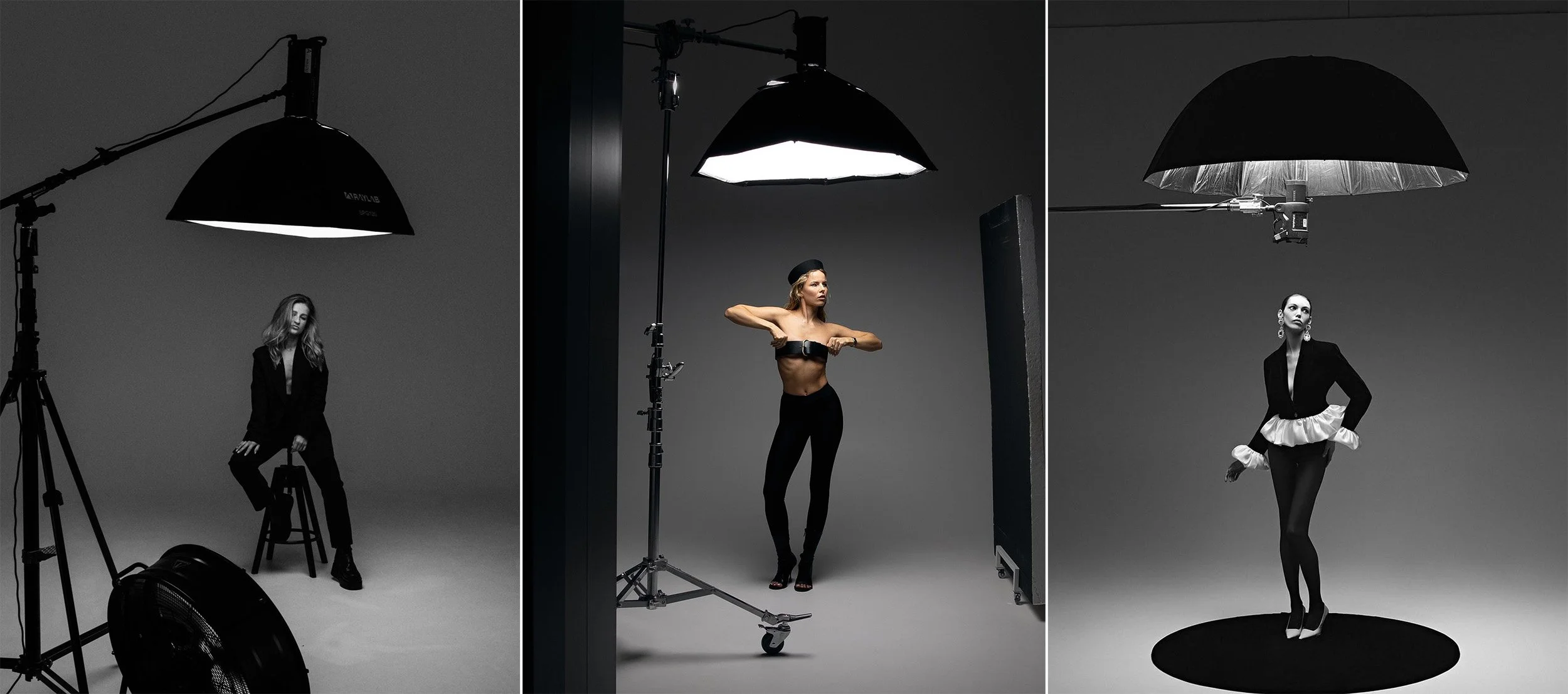 In the example shots above, you can clearly see what I mean. It’s not just the strobe that makes these top lights so difficult to use in smaller spaces, but the addition of a modifier that really makes it almost impossible in traditional home-studios.